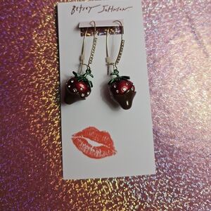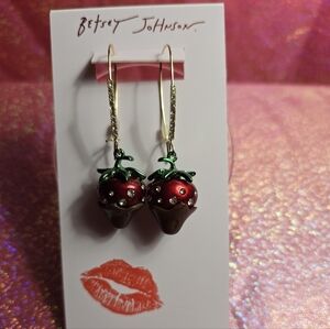 Betsey Johnson Love Spell Chocolate Dipped Strawberry Dangle Earrings!