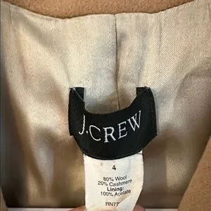Women’s J. Crew Camel Colored Wool & Cashmere Coat Size 4
