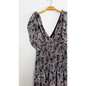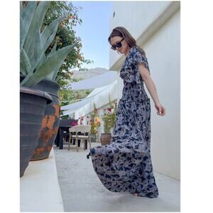 Cinq a Sept Kris Chiffon Dress in Raven Paisley Navy Blue Chiffon Smocked Maxi