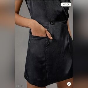 Anthropologie Blazer Romper Stylish Black Satin Sleeveless Size 6