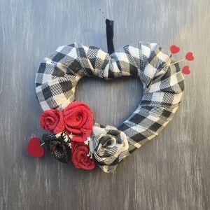 Handmade Heart-shaped Valentine's Day Wreath with black and white buffalo plaid