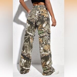 Camo Cargo Pants Size Large Brown Camouflage Wide Leg Pull On Style Relaxed Fit