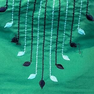 Anthropologie Vanessa Virginia size 8 Green Strapless Embroidered Peplum Top. Pre-owned. Doesn’t come with removable straps. The embroidery is coming undone a little bit on the front. See pictures. Smoke free and pet friendly.