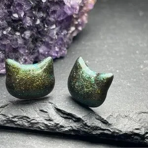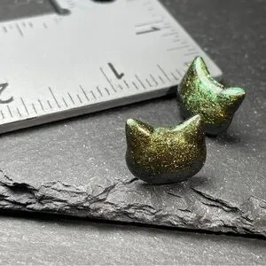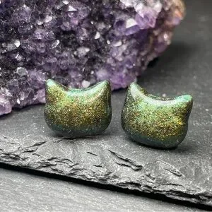 Army Green Cat Stud Earrings Hand Poured Resin