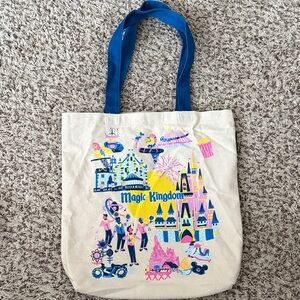 Brand new without tags Starbucks MK bag. Stylish cream shoulder bag with vibrant blue handles. Features colorful Magic Kingdom design.