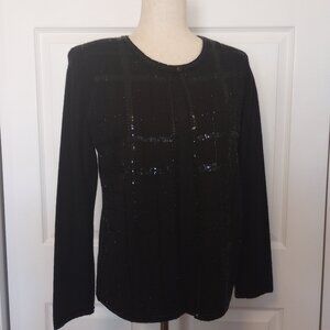 Elegant Black Sequin Beaded Twin Set sz Petite Medium Wool Blend