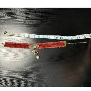 This eye-catching piece features an African-inspired design, perfect for adding a pop of color and culture to any outfit. I paired a vintage brooch with a rustic dusty rose velvet ribbon to create a unique choker necklace. It's adjustable and has a lobster claw closure.