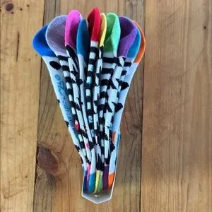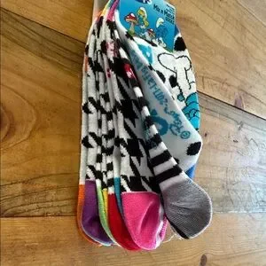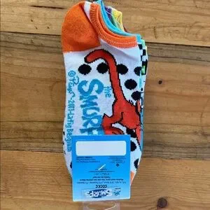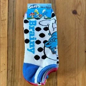 Fun Smurfs socks with polka dots. Features blue and black colors.