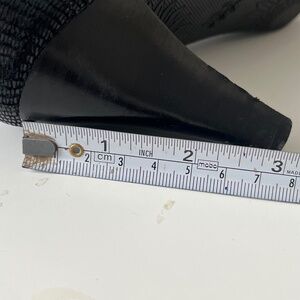 AK Anne Klein iflex black 3" pointed-toe heels feature a snakeskin design leather. Shoes are in very good condition, minor heel tip flaw shown in last photo. This is a refined shoe that elevates everyday business suiting and easily transitions into evening.