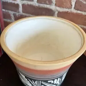This vintage Mesa Verde Ute pottery planter, hand-signed “Tsosie,” captures the rich artistry and cultural heritage of Native American craftsmanship. Hand-painted with bold black and white geometric designs and a warm gradient of earth tones, this piece embodies the rustic beauty of the American Southwest. With its Santa Fe-inspired aesthetic, it’s both a functional planter and a statement art piece that adds authenticity and charm to any home or garden space.
