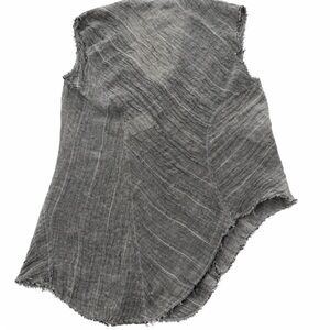 ZARA ZW Collection asymmetrical sleeveless top made of 100% linen. Features a textured, crinkled fabric with raw-edge finishes and an uneven hem for a modern, artisanal look. Lightweight and breathable, ideal for warm weather and layering.