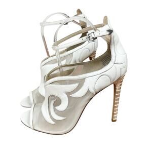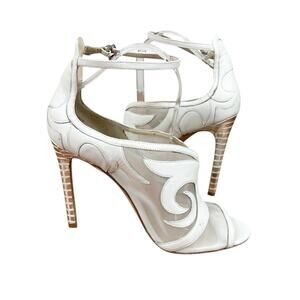 Brian Atwood Linscott Mesh Inset Heels Leather Ankle Strap Wedding Size 9.5