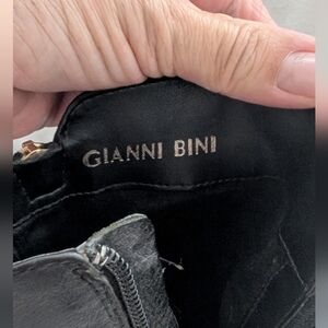 Chic new without box Gianni Bini black leather high heeled ankle boots with stylish gold buckle accents. Perfect for elevating any outfit. These boots are a size 7.5M. Paid $170 for these boots. Please see all of the photos for full details.