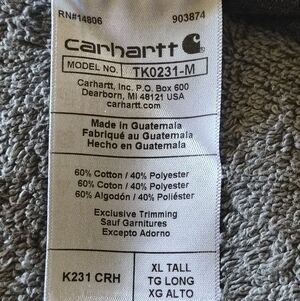 Carhartt logo spelled out back of left sleeve