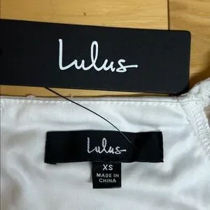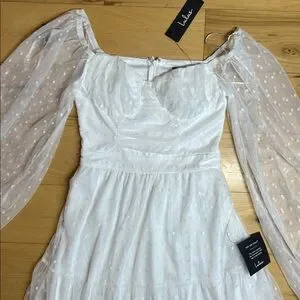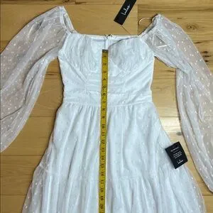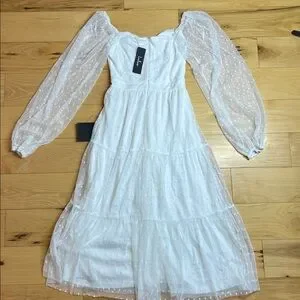 NWT Lulus White Long Sleeve Tiered Dress with Sheer Polka Dot Sleeves | Size XS