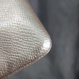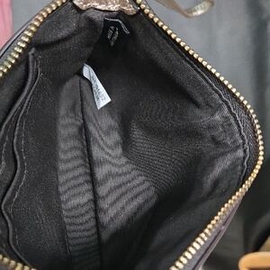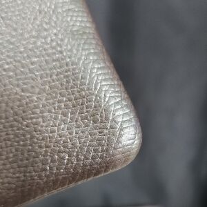 Elegant wristlet with a metallic finish. Includes a handy wrist strap.