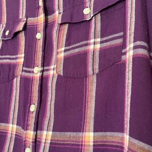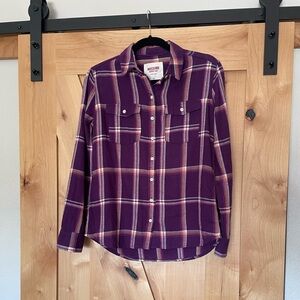 Vibrant plaid flannel shirt by Mossimo. Features a button-up front and classic collar.