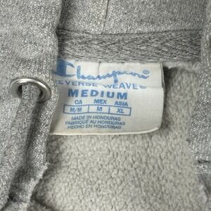 Champion Reverse Weave Hoodie Sweatshirt Big Logo Gray Size Medium Cut Neck Logo