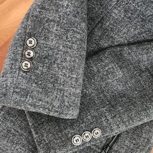 Stay warm and stylish with this elegant gray wool blend coat. Perfect for any occasion.