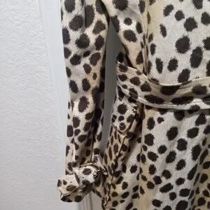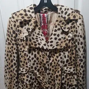 Lovely designed fully lined in silk with a notched collar that can be worn buttoned up, lightly padded shoulders, front button closures, tapered sleeves with belts. RETAIL PRICE $750