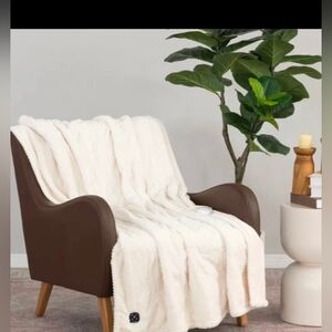 Berkshire Heated Luxe Faux Fur Throw Blanket Size 50" x 60" Cream