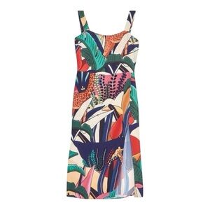 Farm Rio NWT Rainbow Fauna Tropical Jungle Print Midi Slip Dress Women’s Small