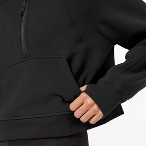 Lululemon Scuba Oversized Half-Zip Hoodie in Black Cotton-blend Fleece fabric. With an oversized fit and the soft, cozy fabric you love, this new Scuba silhouette keeps your post-practice comfort at peak levels.