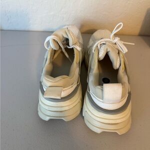 Sleek Nike shoes in light gray and white. Ideal for active wear.