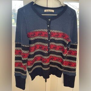 New Free People To The Woods Sweater blue red reindeer boho NWOT medium $128