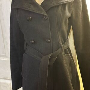 Stay warm and stylish with this elegant black double-breasted coat. Perfect for any occasion, this coat offers both comfort and sophistication