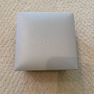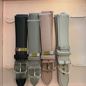 Michele watch face with interchangeable straps. Straps include tan leather (never used), white leather (used a few times) and silicone luxe neutral box set. Watch face is in excellent condition, as it was rarely worn.