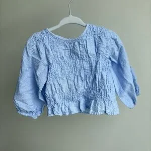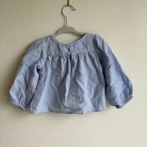 Zara Baby Girl Seersucker Long Sleeve Smocked Light Blue Top Size 9-12m