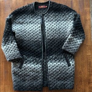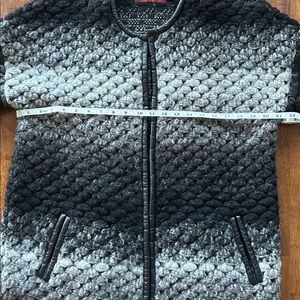 7 For All Mankind Size M Wool Cardigan Lamb Leather Accents Heavyweight Luxury