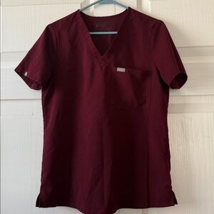 FIGS Burgundy Catarina One-Pocket Scrub Top Size Small