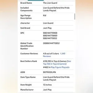 Details: Disney Junior's Lion Guard Defend the Pride Lands playset has eight amazing kid-powered features that make for hours of Lion Guard play. Capture intruders with the surprise leaf floor trap or use the collapsing rock ledge that drops into the bone trap! Defend Pride Rock with the boulder launcher at the top of the waterfall, move Kion from level to level with motorized vine lift, and enlist Ono to keep a keen eye on the horizon with the tree top perch. This awesome set also includes a whooshing waterfall, a hidden passage way, and an exclusive Kion articulated action figure! Create your own adventures with all your favorite Lion Guard characters!