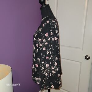 Rue+ Black And Pink Floral Top With Bell Sleeve Sz: 3X