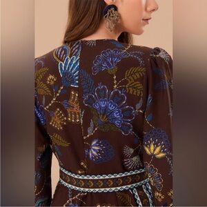 Farm Rio Brown Embroidered Garden Floral print V Neck Jumpsuit