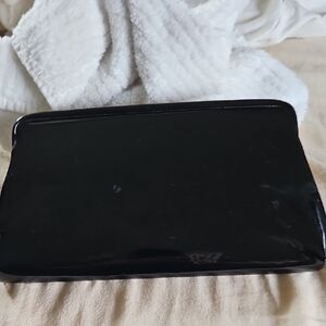 This stylish clutch bag features a sleek black exterior with a vibrant red interior. Perfect for evening outings or special occasions.