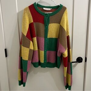 Lisa Says Gah Lauda Cardigan in Disco Check 🌈 size M/L with an oversized fit. Definitely fits closer to a large than a medium imo. In good used condition, some pilling here and there but nothing a fabric shaver can’t fix!