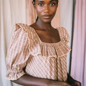 This gorgeous Christy Dawn “The Maggie Dress” in a rich chestnut plaid features soft shades of pink and orange with a flattering, feminine silhouette. Designed with delicate ruffle details, a fitted bodice, and a breezy skirt, this sundress is both sustainable and effortlessly stylish.