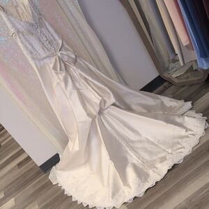 Step into elegance with this luxurious ivory bridal gown. Featuring exquisite lace details, this dress is designed to make your wedding day unforgettable.