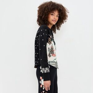 Top: henley neck, long sleeves, pullover style, holiday motif, sweater knit