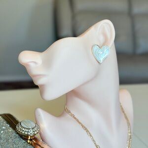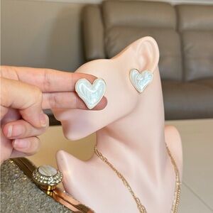 These elegant heart-shaped earrings feature a stunning white design, perfect for adding a touch of sophistication to any outfit.