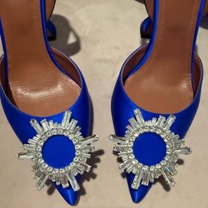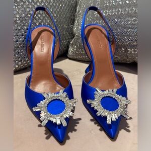 Amina Muaddi Begum Blue Heels with Crystal Embellishments