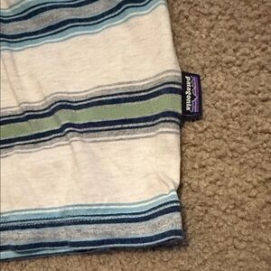 Patagonia Blue and Gray Striped Tee