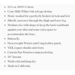 Taylor Stitch jeans mens 28* The Slim Jean in 24 month wash selvage denim NEW