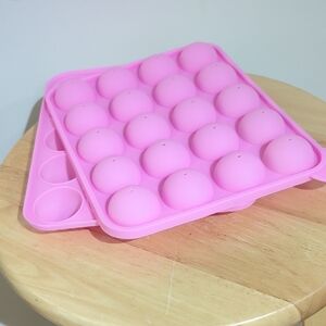 1 set (top and bottom) of pink silicone round baking molds for cake balls, cake pops or doughnut holes.