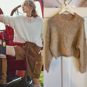 NWT free people stardust pullover mock cropped fuzzy sweater conch shell beige