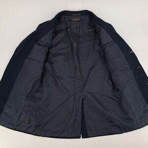 Boys navy blue blazer from Brooks Brothers. This classic blazer features gold buttons with the iconic Brooks Brothers sheep emblem. It is designed for a refined look, perfect for school uniforms or special occasions. Ideal for formal events, school functions, or holiday gatherings.
