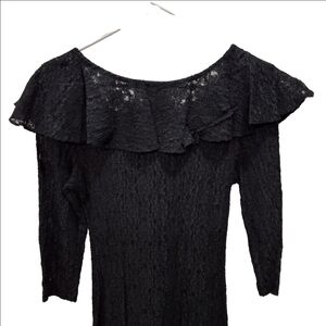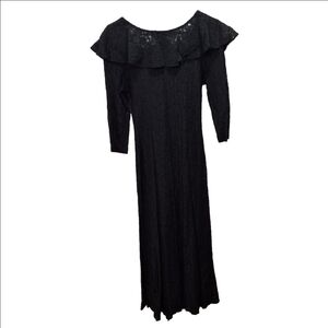 All That Jazz~VTG 80s~Black Lace~Button Maxi Dress~Whimsygoth~Ruffled Collar~7/8